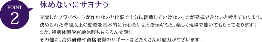 | 2.社員が家族に対する責任を十分に果たすことが出来るよう、配慮する。 |